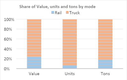Not surprisingly, the greatest amount of freight is moved through the region by truck.