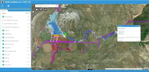 Figure 2. Caption: This is an example of higher-level integration. The CADD data shown here are hosted within GIS, available via an internal website, and are used in the field for landowner coordination and field data collection. The same data are used by both CADD and GIS, allowing both platforms to benefit from a single source of truth.