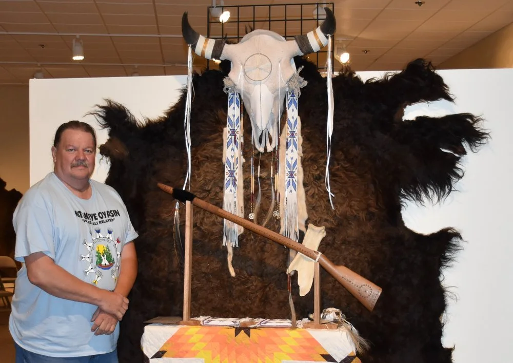 Jerry Fogg is an enrolled member of the Yankton Sioux Tribe and a nationally respected mixed-media artist and Indigenous storyteller whose work challenges audiences to rethink history, place, and cultural resilience. Through his signature Foggma technique, Fogg layers found objects, historic documents, and traditional materials to create powerful visual narratives grounded in Nakota knowledge. Influenced by Native art pioneers Oscar Howe and Donald F. Montileaux, his work is exhibited nationwide.