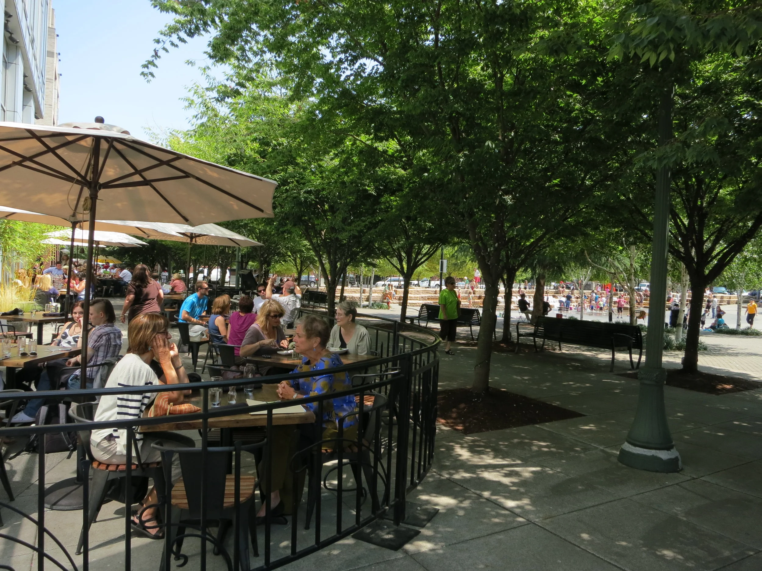 First and foremost, mixed-use achieves vibrancy and economic success by being great places for people. Why is the people scale so critical? Because economic success is indelibly linked to foot traffic. Unlike a strip mall, where people drive to each store to shop, a mixed-use district requires high foot traffic counts to generate high sales per square foot for retail tenants. In fact, it is this pedestrian cross-pollination between businesses that creates an overall experience that exceeds the impact that just one establishment can provide.